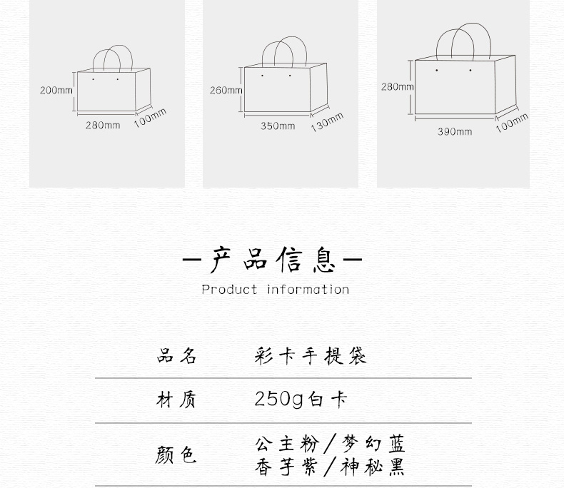 白卡手提袋:1号袋10号袋,次日发货,常规尺寸:3-5天发货,特殊尺寸:7天发货;
